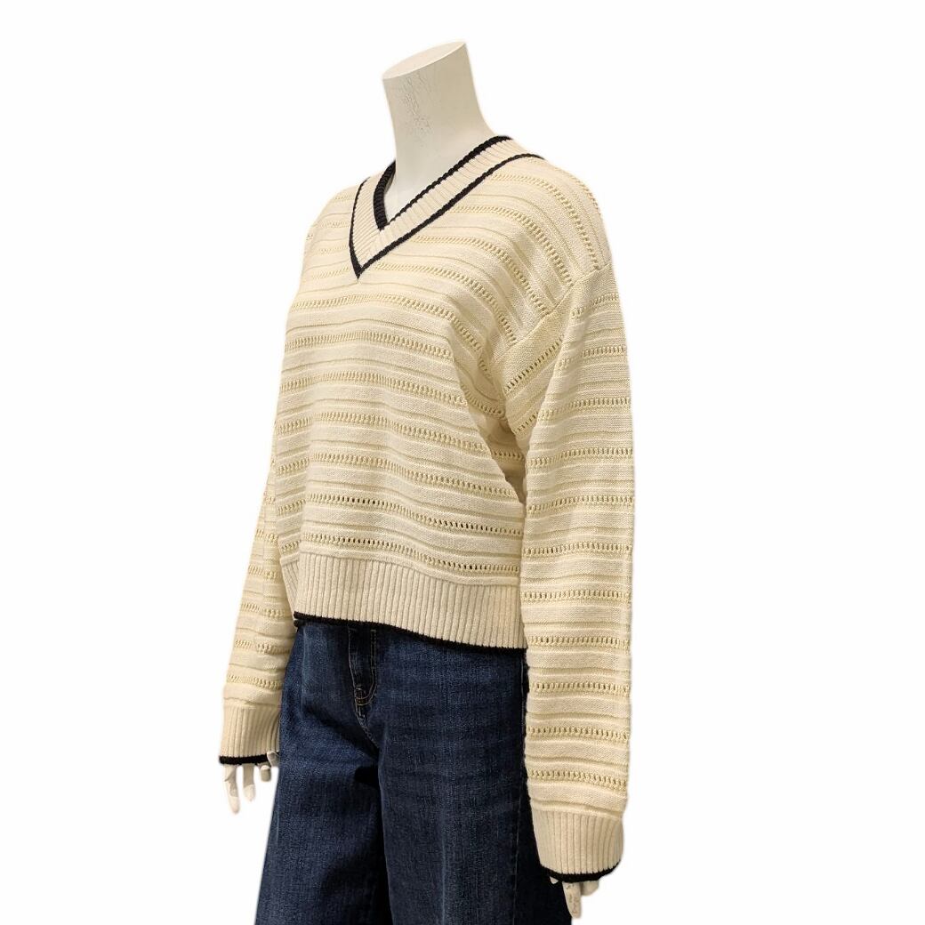 洗練されたVあきデザインで、女性らしさを引き立てるレーシーセーター。軽やかで暖か、レーシーな編み模様が女性らしさを演出します。重ね着など幅広いコーディネートも楽しめる、大人の女性のためのセーターです。