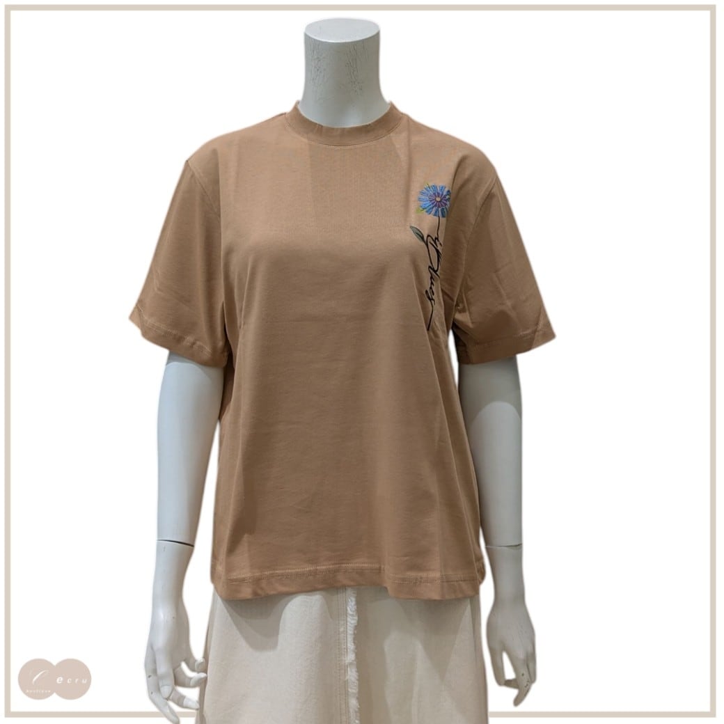 繊細なフラワー刺繍が施されたカットソーは、シンプルな中にも華やかさが見え隠れします。カジュアルなコーディネートはもちろん、ちょっとしたお出かけにも最適な一枚です。秋カラーと柔らかな素材感が魅力です。