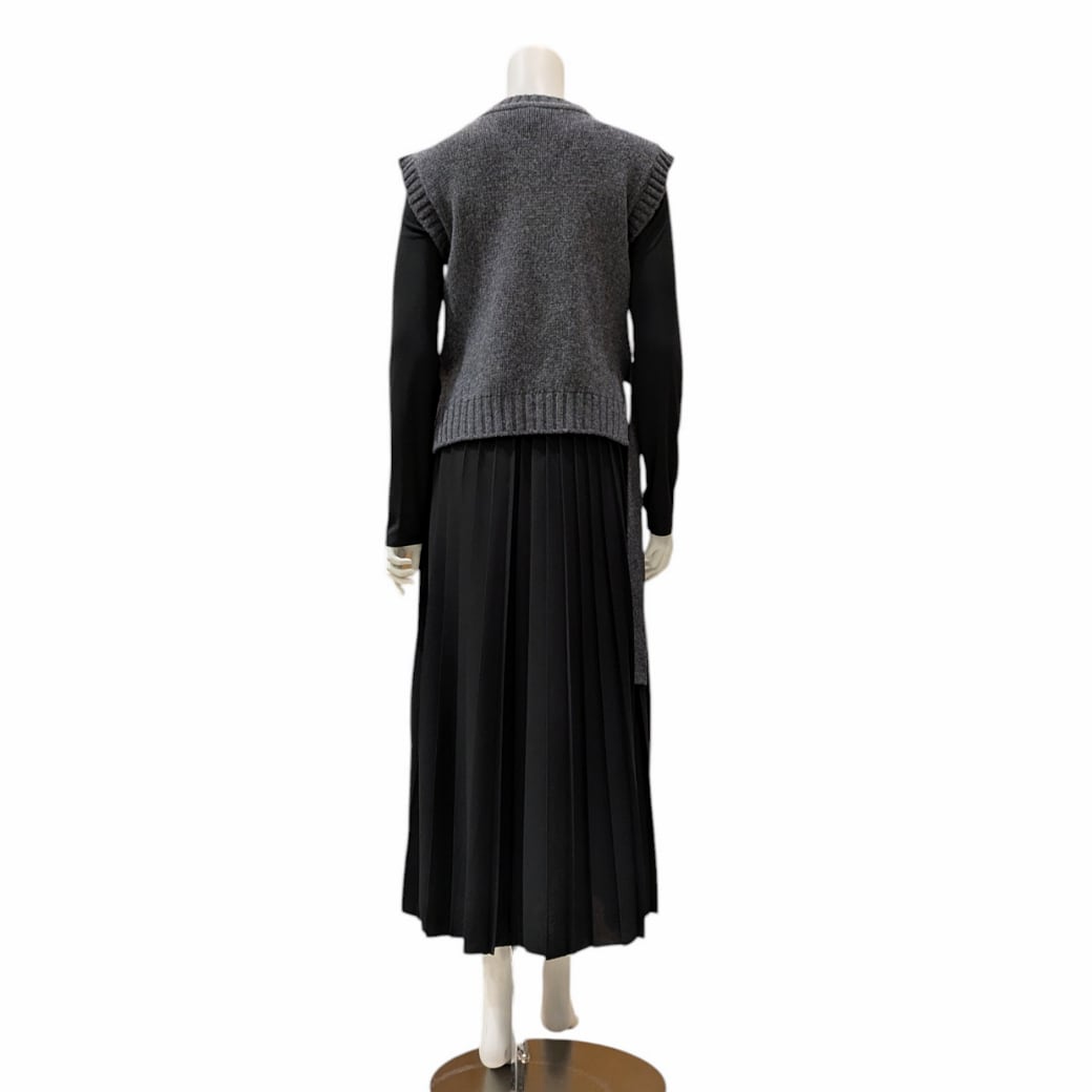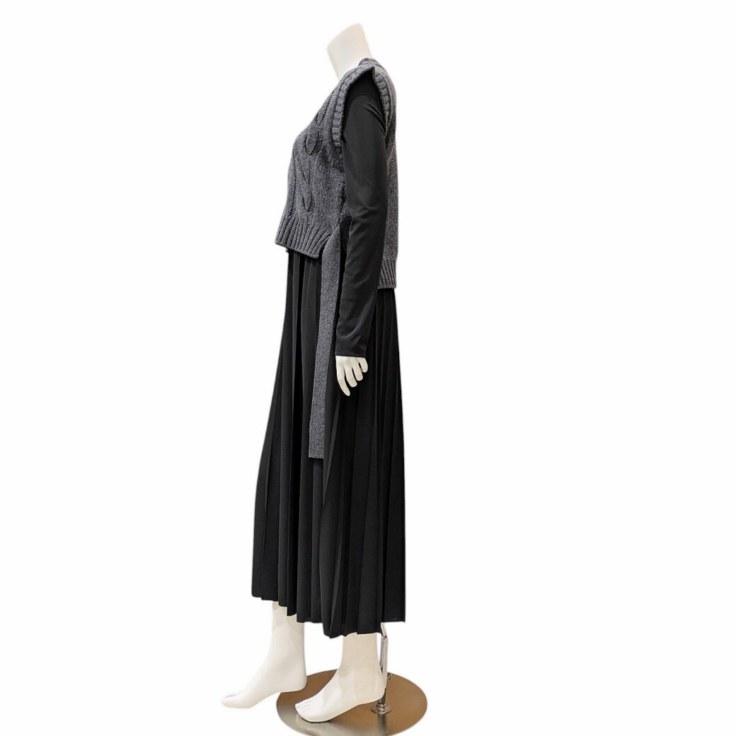 ■カラー ワンピース 黒 ベスト グレー