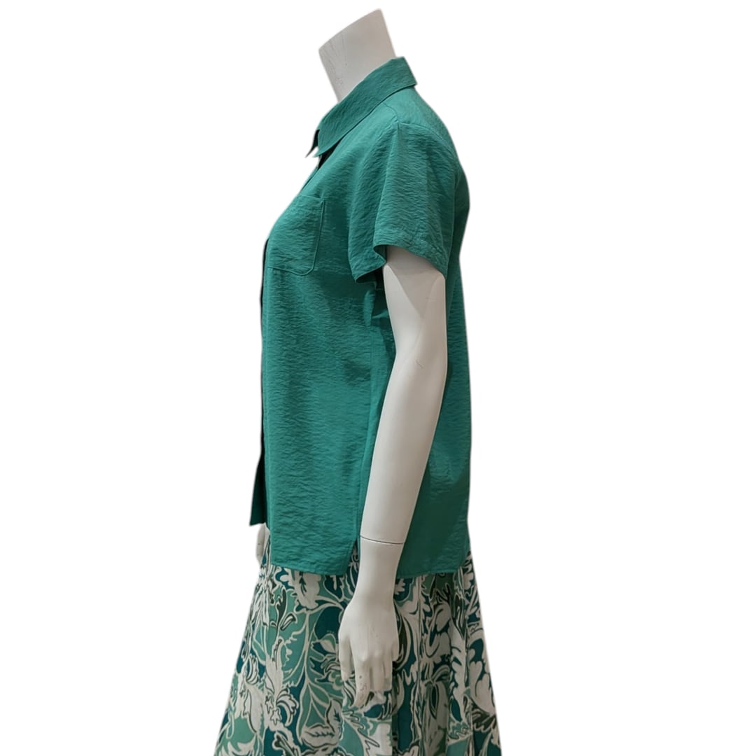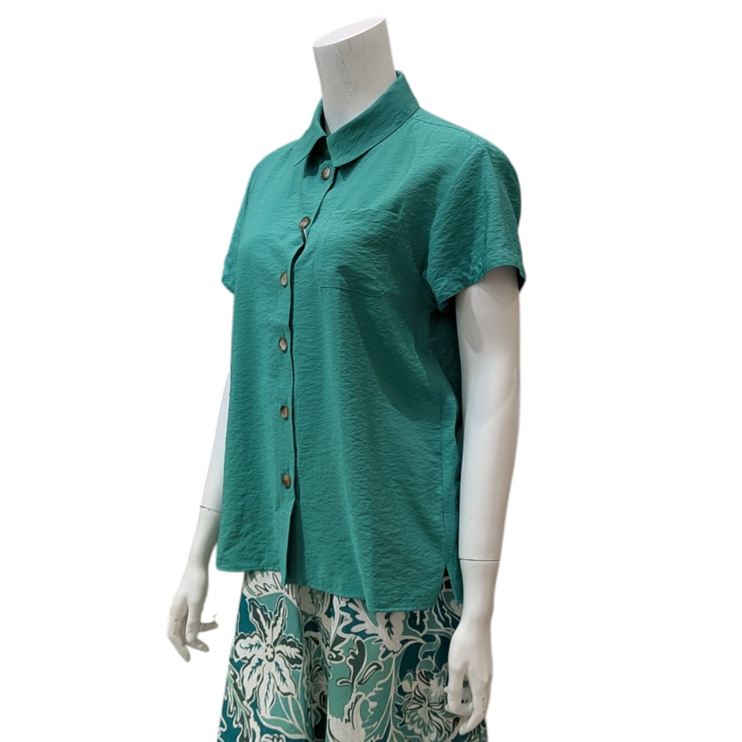 シンプルながらも上品なデザインが魅力です。軽やかな素材が使用されており、通気性も良く、夏の暑い日でも快適に過ごせます。デニムやスカートと合わせてカジュアルに、また、ワイドパンツと組み合わせることでモードなスタイルにも対応できる一着です。