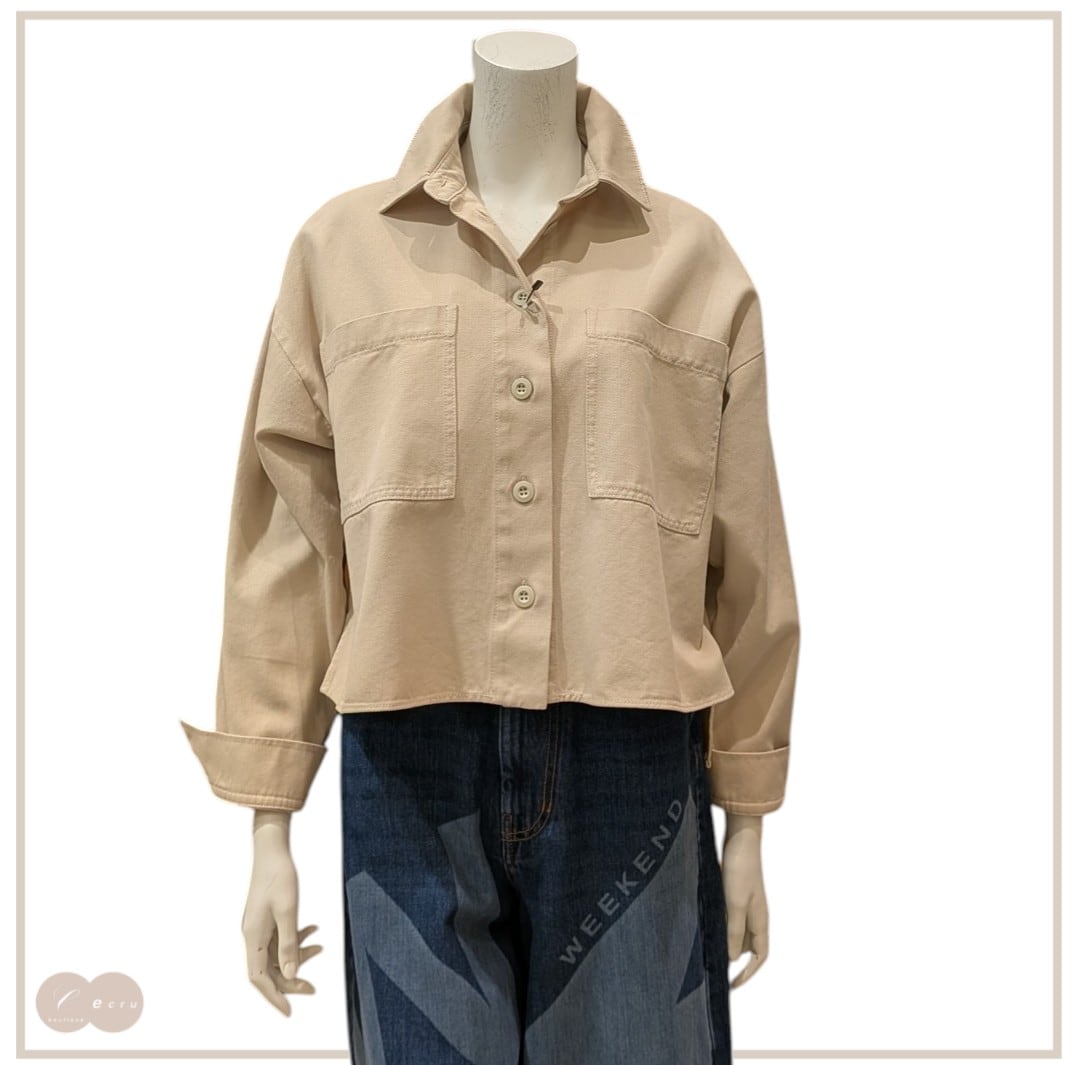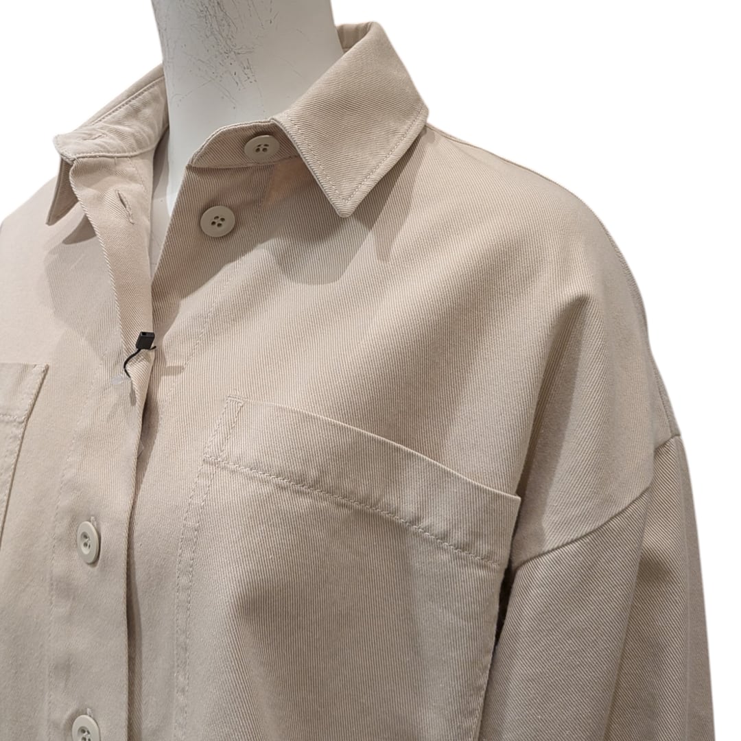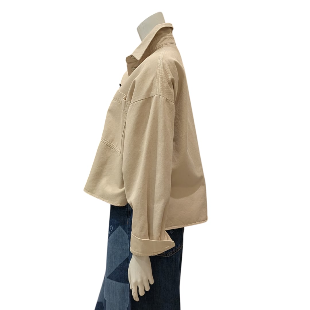 シンプルでありながら洗練されたデザインが魅力のベージュデニムジャケット。ゆとりのあるボクシーシルエットは、動きやすさを提供します。中に重ね着しても窮屈感なく、春夏のコーディネートにぴったりのアイテムです。デイリースタイルからカジュアルなオフの日まで幅広くご使用いただけます。どんなボトムスにも合わせやすく、シルエットを引き立てる一着です。