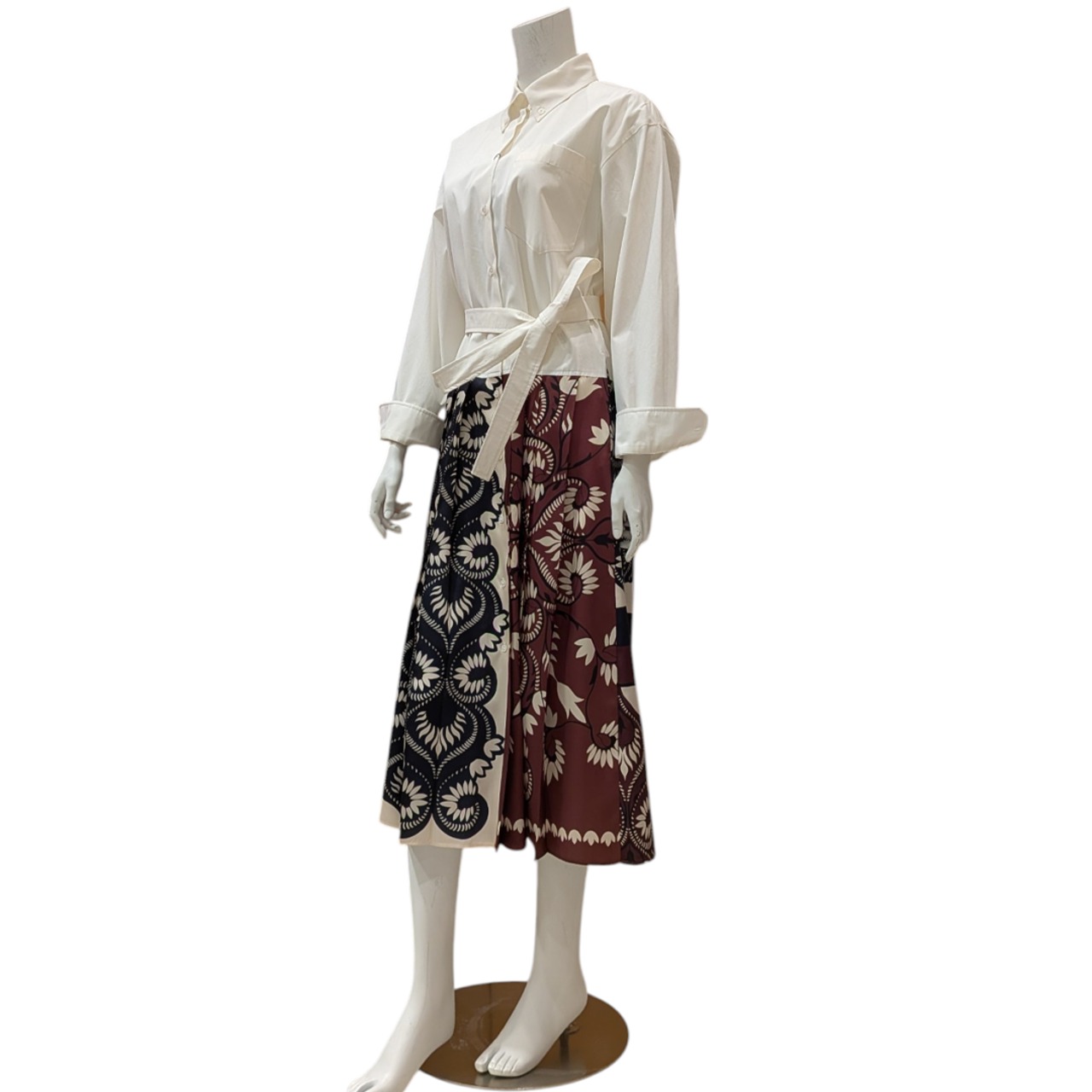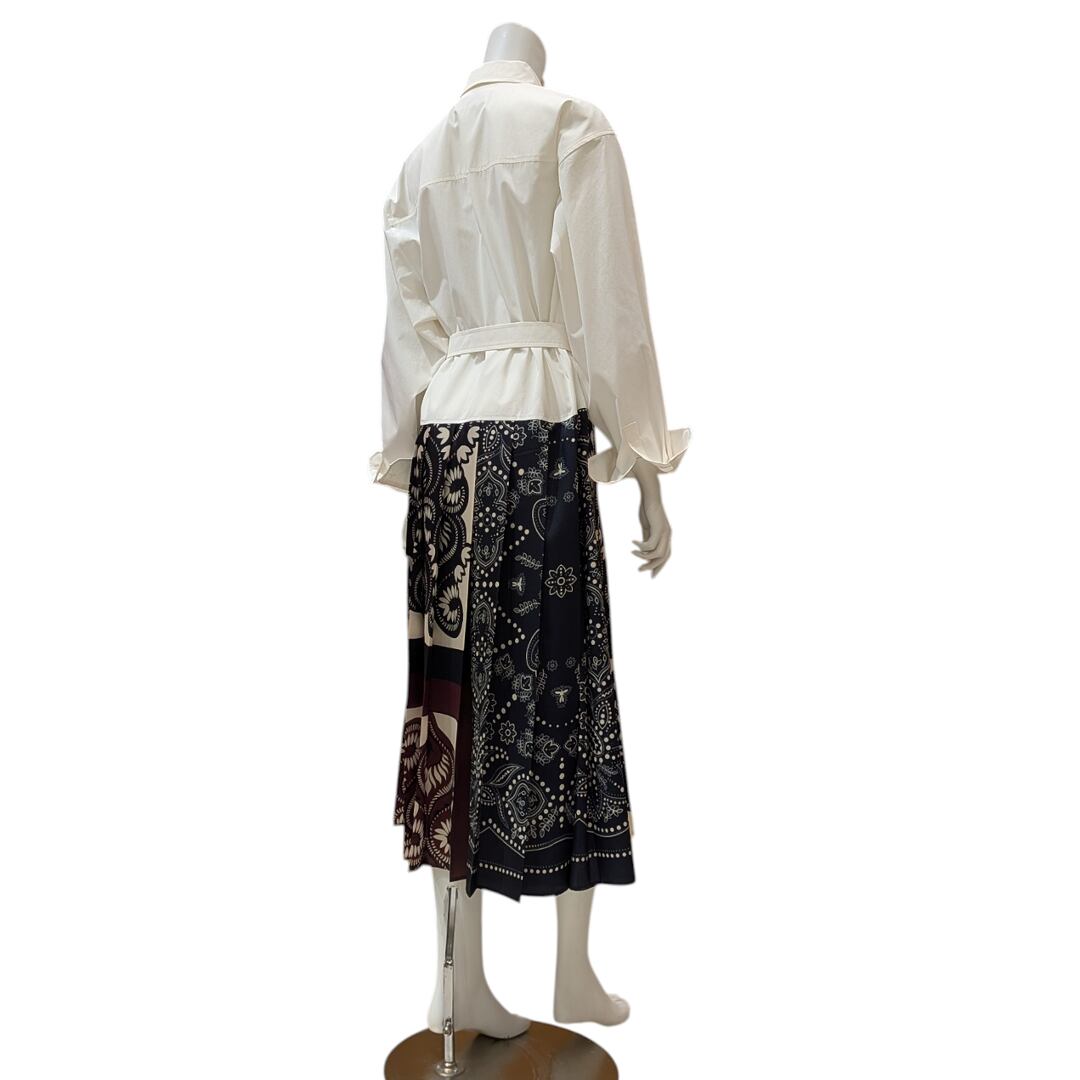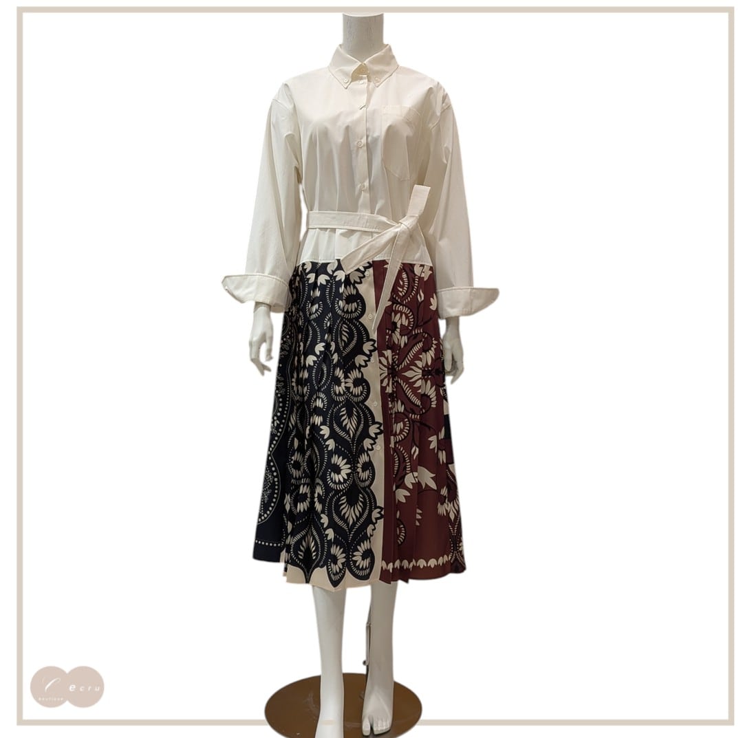 独特なエスニック柄が特徴的なバイマテリアルワンピース。ハリのあるコットン生地と柔らかなサテン生地の組み合わせが魅力的です。軽やかで流動感のあるボトムスが女性らしさを演出します。コットン素材の通気性の良いトップスは、夏にぴったり。カジュアルからフォーマルまで幅広いシーンで活躍します。