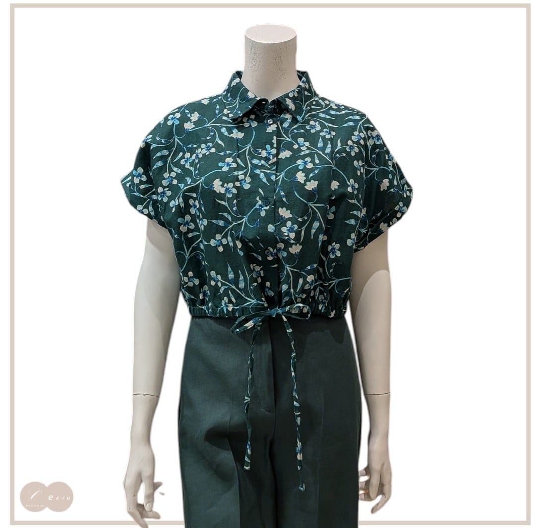 リネンブレンド フラワープリント ブラウス