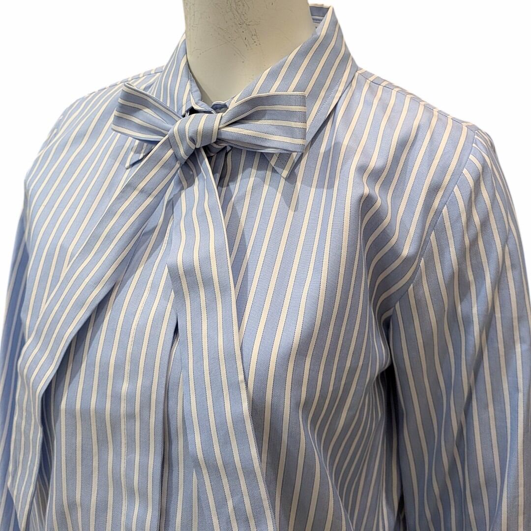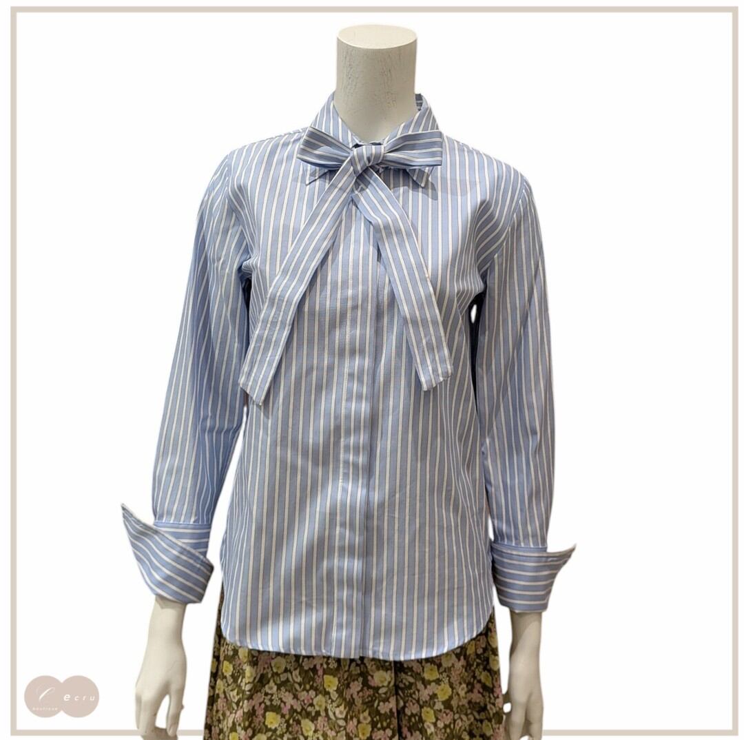 棒リボン付きストライプブラウス